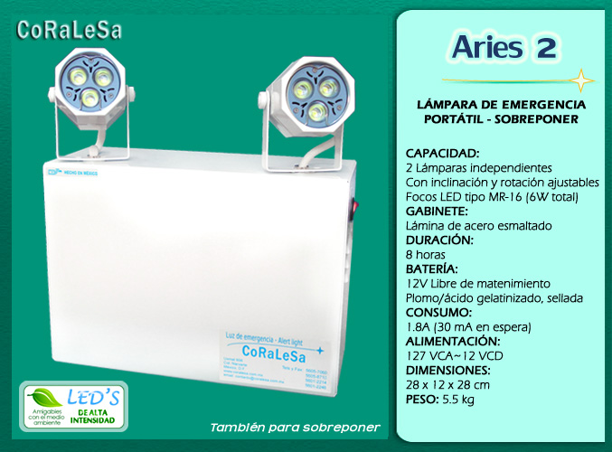 Equipo de luz de emergencia compacto con 2 lámparas de LED tipo MR-16 que proporcionan